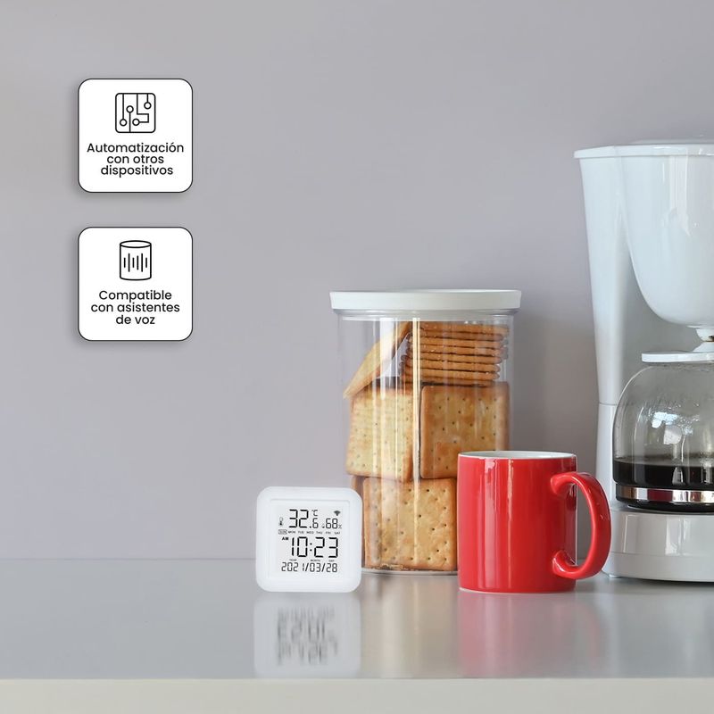 Características | • Sensor de temperatura y humedad Smart con Display de 2”, conexión a Wifi para gestión por aplicación*