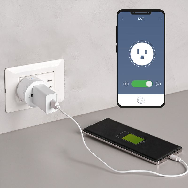 Características | - Tomacorriente inteligente WiFi controlado por aplicación móvil